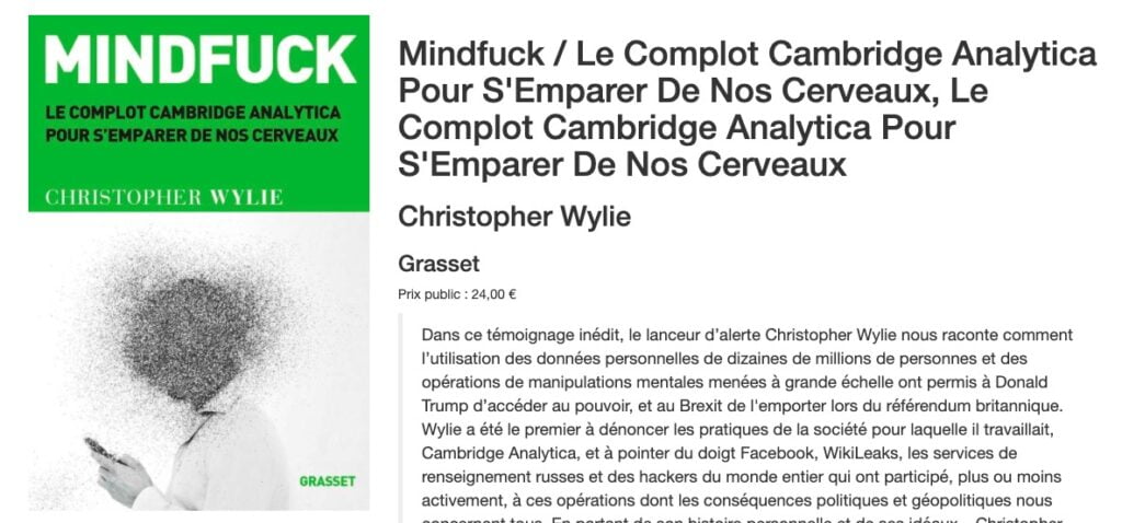 Si l’influence, les données, les fakes news et la manipulation des foules avec les réseaux sociaux vous intéressent, n’hésitez pas à vous procurer ce livre chez votre libraire indépendant préféré en cliquant ici : https://www.librairiesindependantes.com/product/9782246824732/